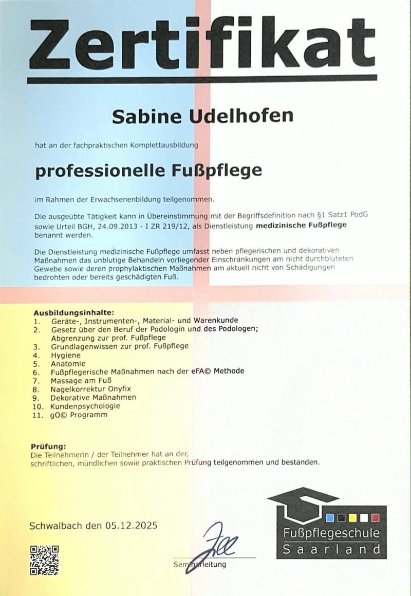 Ich bin gelernte Med. Fachangestellte, Versorgungsassistentin und habe mich zusätzlich zur Fußpflegerin weitergebildet. Mit meiner Erfahrung und viel Sorgfalt ist es mir wichtig, meinen Kundinnen und Kunden professionelle Fußpflege und echte Wohlfühlmomente zu bieten.